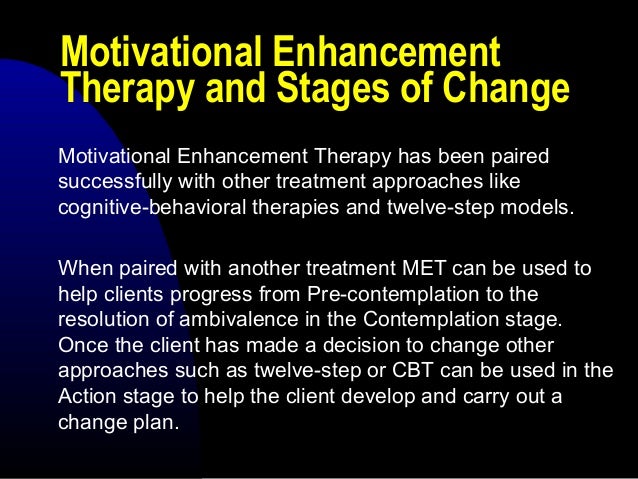 Motivational Enhancement Therapy Worksheets. Stages of change - description of each of the stages and therapist tasks download. Motivational Enhancement Therapy Manual. intervention yielded comparable outcomes even when compared with longer, more intensive alternative approaches.