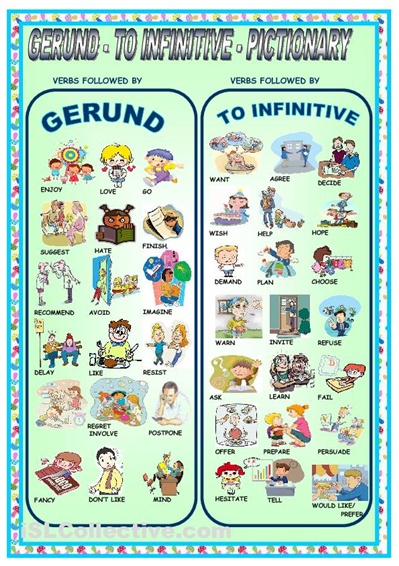Gerund and infinitive worksheets are in PDF Format and consist of a worksheet and answer sheet to check your results.