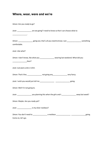 Where, Wear, Were or We're? by jenkarenh - Teaching ...
