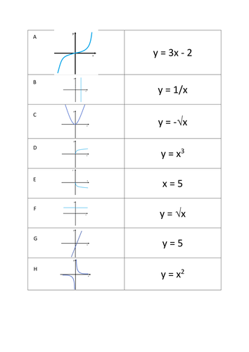 Matching Equations And Graphs Worksheet. Use the gradients and intercepts given to match each linear graph to its equation. Write the letter identifying the graph next to the function or relation.
