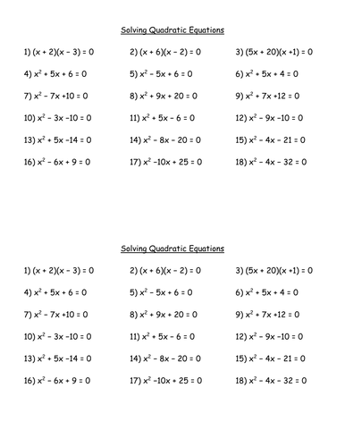 Using this power with respect to solving quadratics by completing the square, he made a formula out of what he'd been doing; namely, the Quadratic. Factoring only woks if the equation can be factored. Each worksheet is in PDF for quick printing.