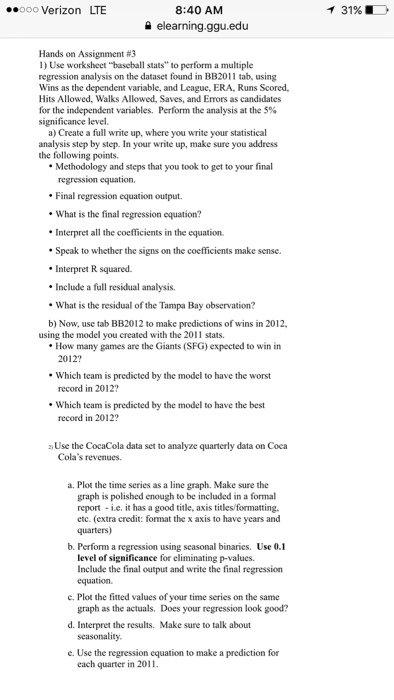 Hands On Assignment #3 Use Worksheet "baseball Sta ...