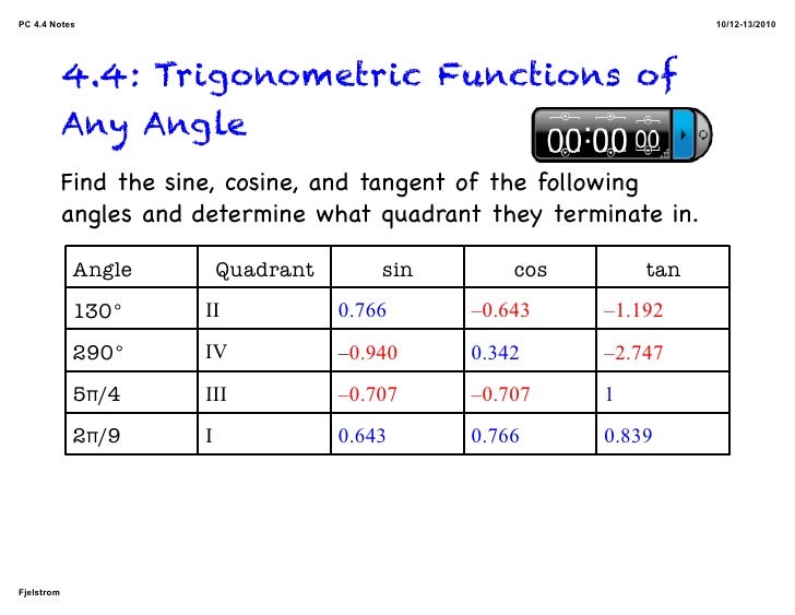 Trigonometric Functions Of Any Angle Worksheet. A function of any angle will equal plus or minus that same function of the corresponding acute angle. Utilize this adequate supply of inverse trigonometric ratio worksheets to find the exact value of inverse trig ratios using charts and calculators, find the measure of angles, solve the equations, learn to evaluate inverse and the composition of trigonometric functions and a lot more.