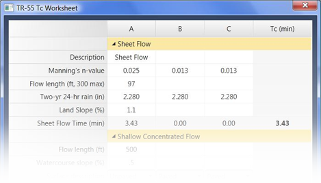 Determining Travel Time; Shallow Concentrated Flow; Travel Time Worksheet. These procedures are applicable in small watersheds, especially urbaniz-ing watersheds, in the United States. A spreadsheet entry job requires the worker to enter data into a spreadsheet, which is easier than using database software.