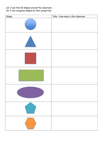 KS1: Year 1 - 2D Shape Hunt - Tally - New Curriculum ...