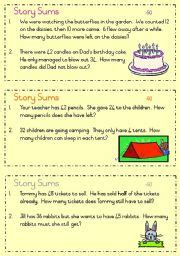 Story sums - answers under 50 - ESL worksheet by Joeyb1