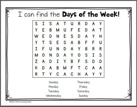 Days of the Week Worksheets - Mamas Learning Corner