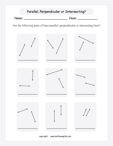 Parallel, Perpendicular and Intersecting Lines Worksheets